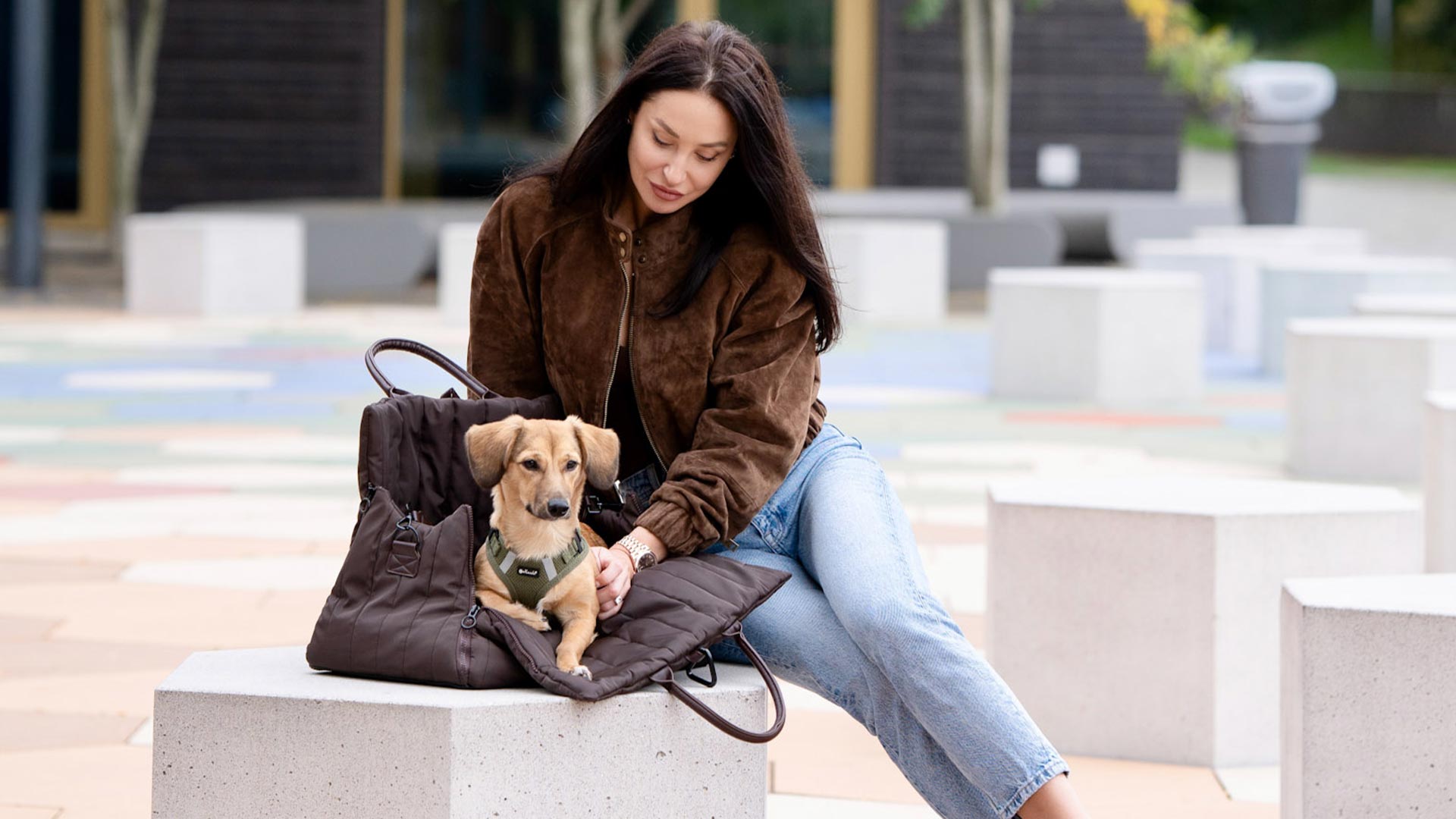 Egal ob Shopping, Café oder Spaziergang:  Dein Hund ist sicher und bequem  an deiner Seite.